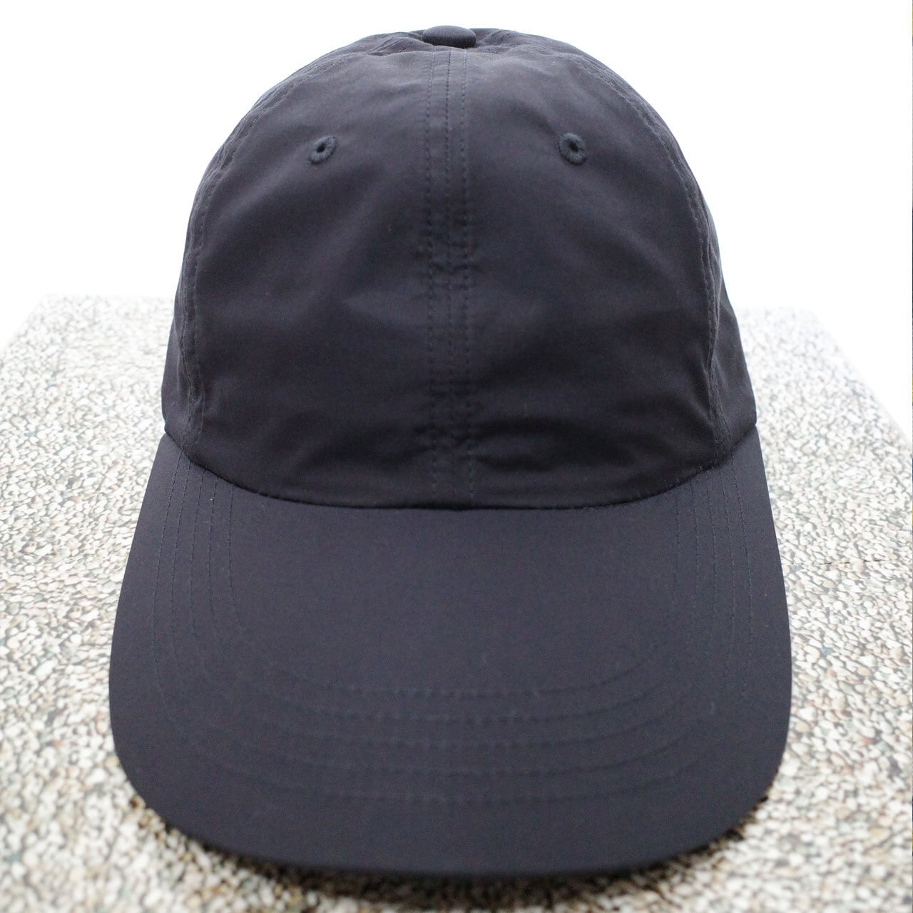 ベーシックな6パネルは生地感に合わせて作られたオリジナルボディに、9センチのロングブリムタイプ